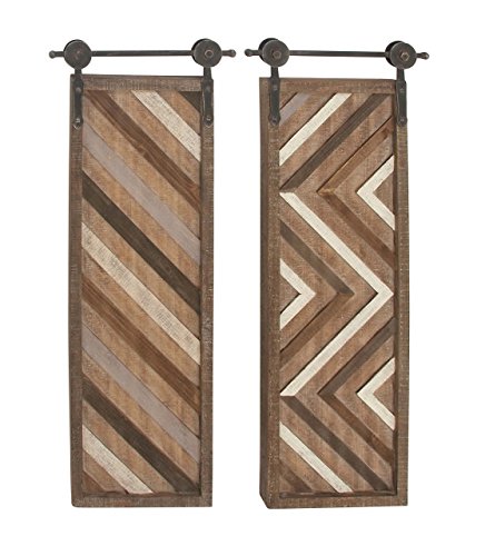 Deco 79 59470 Rectangular Wood and Metal Wall Decor (Set of 2), 16" x 39", Brown/White/Gray, 2 Piece