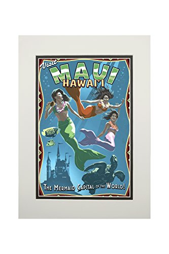 - Maui, Hawaii - Mermaid Vintage Sign (11x14 Double-Matted Art Print, Wall Decor Ready to Frame)