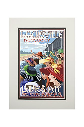 - Louisville, Kentucky - Ladies Day at the Track Horse Racing (11x14 Double-Matted Art Print, Wall Decor Ready to Frame)