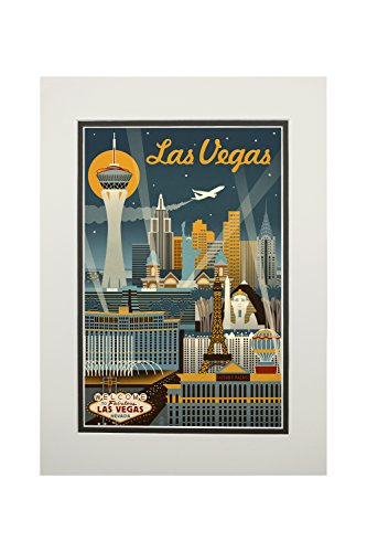 Las Vegas, Nevada - Retro Skyline (11x14 Double-Matted Art Print, Wall Decor Ready to Frame)