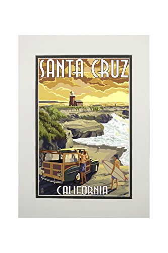- Santa Cruz, California - Woody and Lighthouse (11x14 Double-Matted Art Print, Wall Decor Ready to Frame)