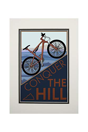 - Conquer the Hill - Mountain Bike (11x14 Double-Matted Art Print, Wall Decor Ready to Frame)