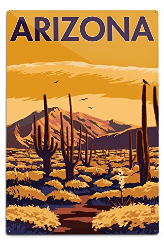 - Arizona - Desert Scene with Cactus (12x18 Aluminum Wall Sign, Wall Decor Ready to Hang)