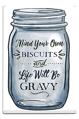 Lantern Press Mind Your Own Biscuits and Life Will Be Gravy - Mason Jar Design (12x18 Aluminum Wall Sign, Wall Decor Ready to Hang)