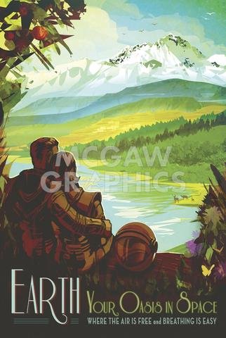 Bruce McGaw Graphics Earth (Vision of The Future, NASA) by Vintage Reproduction, Unstreched, Unframed, Canvas Cloth Size 16" x 22" Image Size 12" x 18"(1721)