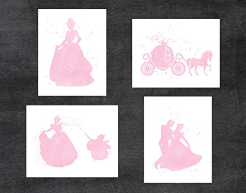 Simply Remarkable Cinderella and Disney Inspired - Set of 4 Pink Watercolor Poster Print Photo Quality - Made in USA - Frame not Included (8x10, Cinderella 4 Pack - Pink)