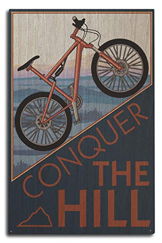 Lantern Press Conquer The Hill - Mountain Bike (10x15 Wood Wall Sign, Wall Decor Ready to Hang)
