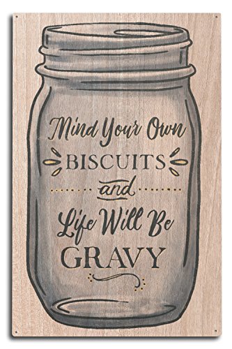 Lantern Press Mind Your Own Biscuits and Life Will Be Gravy - Mason Jar Design (10x15 Wood Wall Sign, Wall Decor Ready to Hang)