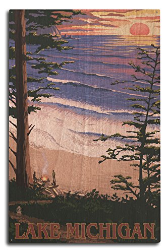Lantern Press Lake Michigan - Sunset on Beach (10x15 Wood Wall Sign, Wall Decor Ready to Hang)