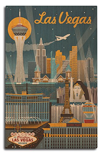 Las Vegas, Nevada - Retro Skyline (10x15 Wood Wall Sign, Wall Decor Ready to Hang)