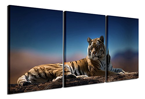 Gardenia Art - Animal Canvas Prints Tigers Wall Art Paintings Blue Pictures Artworks for Bedroom Living Room Decoration,16x24 inch/Piece, Framed, 3 Panels …