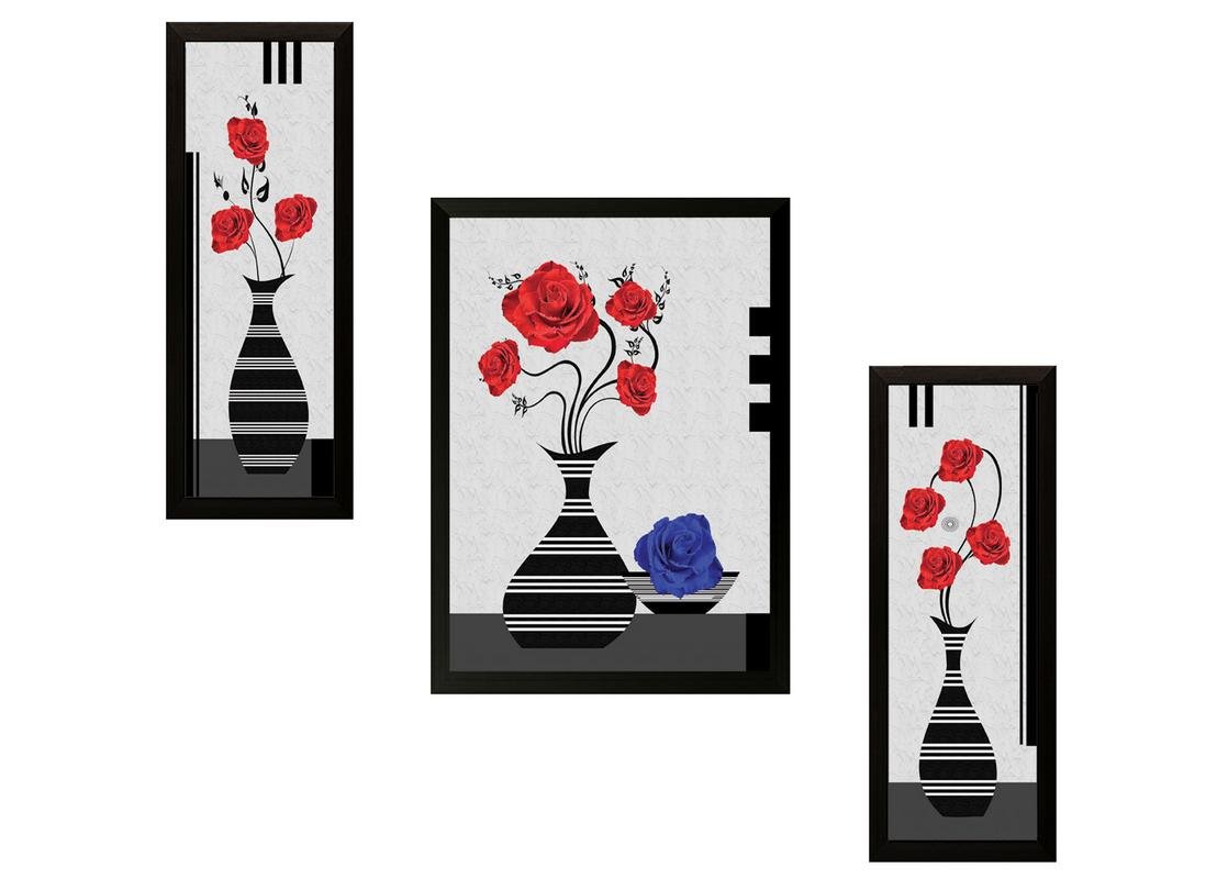SAF DiWAli Gift UV Textured Flower Print Framed Painting Set Of 3 For Home