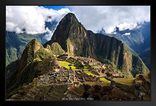 Pyramid America Machu Picchu Inca Site Cusco Province Machupicchu District Peru Photo Black Wood Framed Poster 14x20