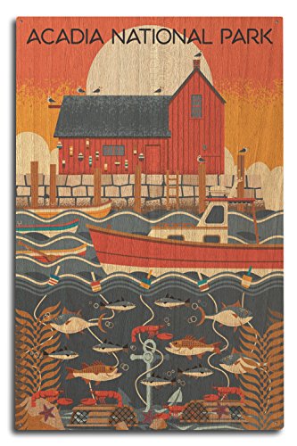 Lantern Press Acadia National Park, Maine - Nautical Geometric (10x15 Wood Wall Sign, Wall Decor Ready to Hang)