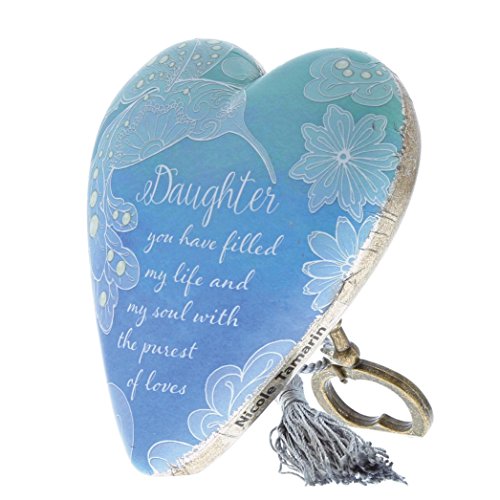 DEMDACO Daughter You Filled My Life And Soul Hummingbird Blue 4 x 3 Heart Shaped Resin Keepsake Art Hearts Decoration with Key and Tassel
