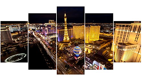 PEACOCK JEWELS [Large Premium Quality Canvas Printed Wall Art Poster 5 Pieces / 5 Panels Wall Decor Las Vegas-2 Painting, Home Decor Pictures - with Wooden Frame