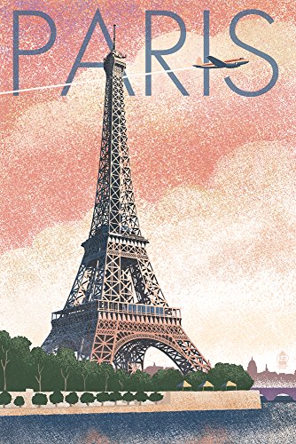 Paris, France - Eiffel Tower and River - Lithograph Style 50526 (12x18 SIGNED Print Master Art Print - Wall Decor Poster)