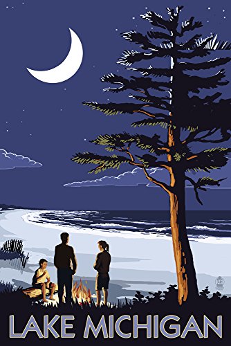 Lake Michigan - Bonfire at Night Scene 40737 (16x24 SIGNED Print Master Art Print - Wall Decor Poster)