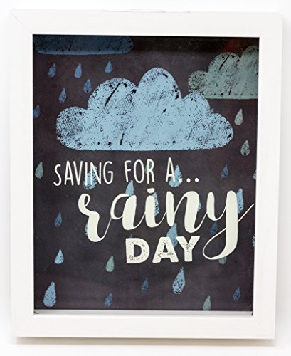 - Charming shadowbox style bank with clear tempered glass window and quality crafted frame makes it fun watch your rainy day fund grow