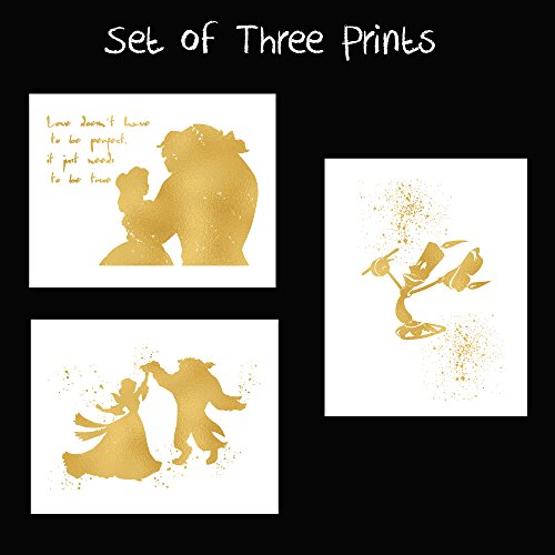 Simply Remarkable Set of 3 Gold Print Inspired by Beauty and The Beast - Made in USA - Disney Inspired - Home Art Print -Frame not Included (8x10, Gold Set 2)