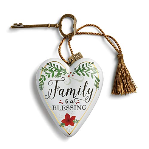 DEMDACO Family is A Blessing Floral Greenery 4 x 3 Inch Heart Shaped Resin Keepsake Art Hearts Decoration with Key and Tassel