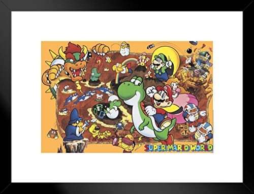 Pyramid America Super Mario World Super Nintendo NES GameSeries Characters Yoshi Luigi Princess Peach Matted Framed Poster 26x20 inch