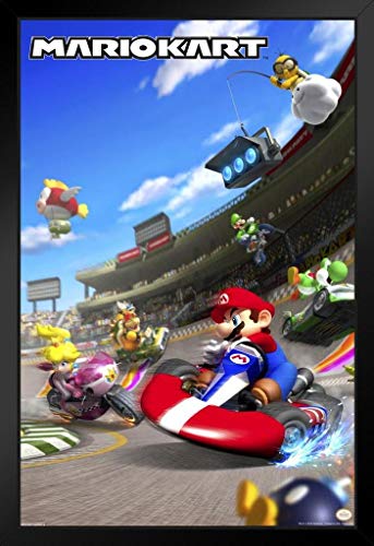 Pyramid America Mario Kart Around The Bend Nintendo Framed Poster 12x18 inch Inch