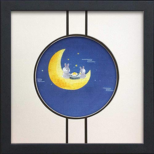 King Silk Art 100% Handmade Embroidery Framed Rabbit Bunny & Supper Moon Oriental Wall Hanging Art Asian Decoration Tapestry Artwork Picture Daughter Gifts 32221WF