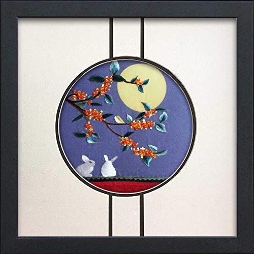 King Silk Art 100% Handmade Embroidery Framed Rabbit Moon Oriental Wall Hanging Art Asian Child Decoration Tapestry Artwork Picture Gifts 32224WF