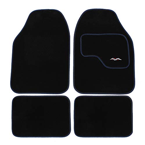 JVL 01-929BL Universal PVC Backed Carpet Car Mat Style Set, Black/Blue, 4 Pieces