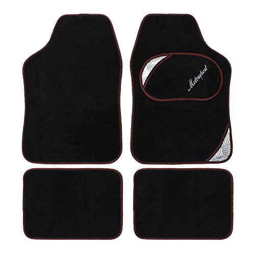 JVL 01-930RD Universal PVC Backed Carpet Car Mat Motorsport Set, Black/Red, 4 Pieces