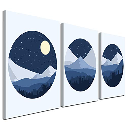 Gardenia Art-Winter Forest and Mountains Under The Moon and Stars Canvas Print Modern Geometry abstarct Wall Art Decor for Living Room Office 12x12 inch/Piece,3 Panels,Framed