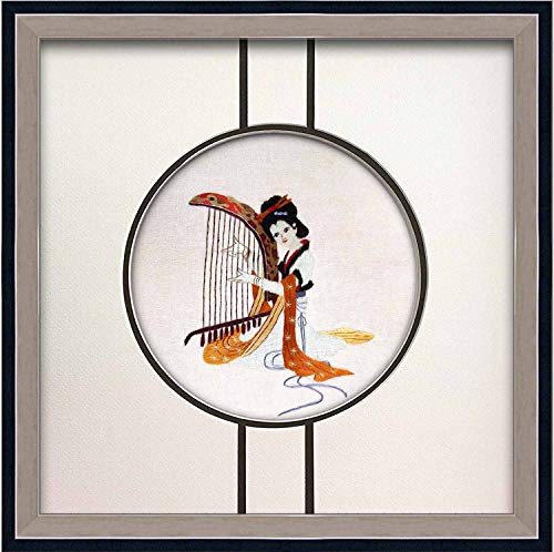 King Silk Art Handmade Stereo Framed Embroidery of Oriental Beauty Girl Playing Konghou Musical Instrument Picture Painting as Gift 39706 SFW