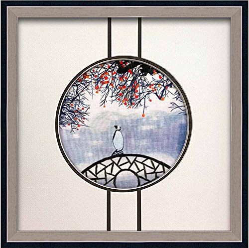 King Silk Art 100% Handmade Contemporary Framed Landscape Embroidery of Black House & Red Fruit Tree Wall Décor Hanging 38302 SFW