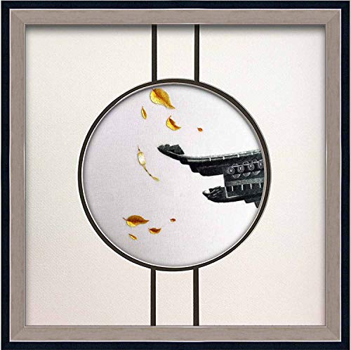 King Silk Art 100% Handmade Contemporary Stereoscopic Framed Landscape Embroidery of Black House Eaves Corner & Yellow Maple Leaf Gift Oriental Wall Art Decoration Hanging Picture Gallery 38306 SFW