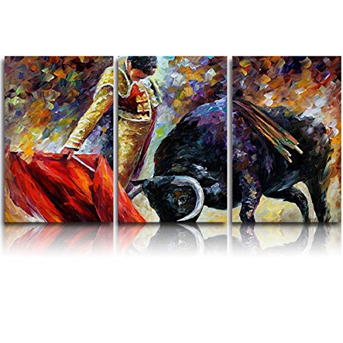 3 Panel Canvas Wall Art Spanish Bullfight Matador with Red Cloth Pictures Home Wall Decorations for Bedroom Living Room Oil Paintings Canvas Prints Framed 20"x24"x3