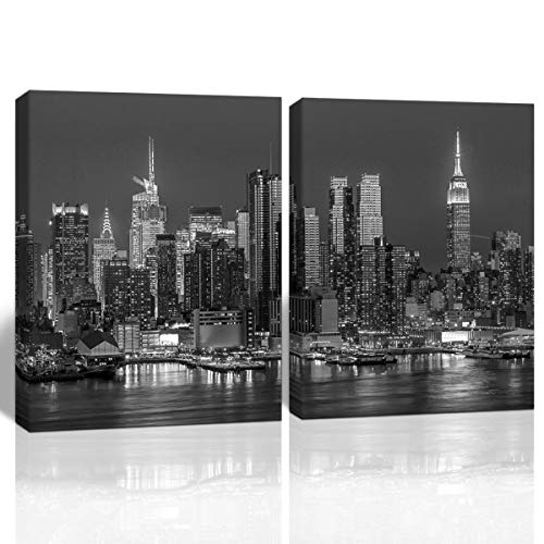 Gardenia Art Black and White Picture New York City Manhattan Midtown Buildings Home Decoration Bathroom Living Room bar Accessories and Decor Stretched and Framed 16x20 in 2 PCS