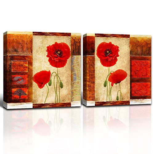 Gardenia Art red Kitchen Accessories Red Poppies Modern Abstract Canvas Art Wall Decorations for Home for Bedroom 16x16 in 2 Panels Stretched and Framed