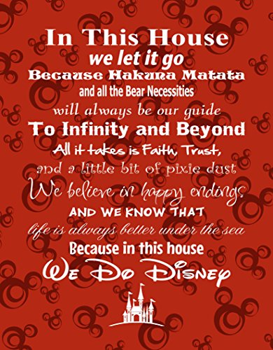 Simply Remarkable in This House We Do Disney - Poster Print Photo Quality - Made in USA - Disney Family House Rules - Frame not Included (11x14, Red Background 1)
