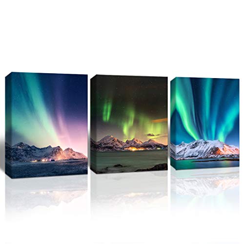 Gardenia Art Aurora Borealis Over The Mountains Canvas Wall Art Home Decorations for Bedroom Living Room Bathroom Wall Decor 12x16 inches/Set 3 PCS Stretched and Framed