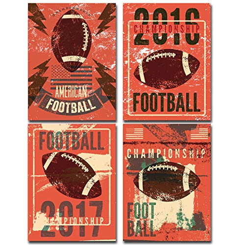 Gardenia American Football Vintage Style Poster Bathroom Accessories Wall Art Home Decorations for Bedroom Living Room 12x16 in 4 PCS Stretched and Framed Ready to Hang