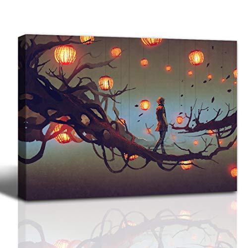 Gardenia Art man walking on a tree branch with red lanterns anime painting bathroom accessories wall art home decor for bedroom living room framed 12x16 in 1 PCS