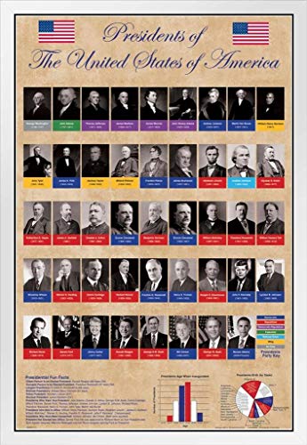 Presidents of The United States of America Classroom Chart White Wood Framed Poster 14x20