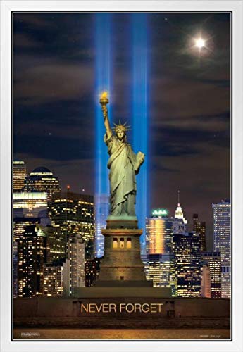Pyramid America Never Forget September 11 Tribute in Light Photography White Wood Framed Poster 14x20