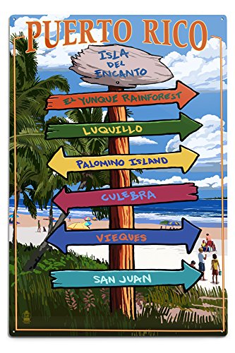 Lantern Press Isla del Encanto, Puerto Rico - Destinations Sign 52969 (6x9 Aluminum Wall Sign, Wall Decor Ready to Hang)