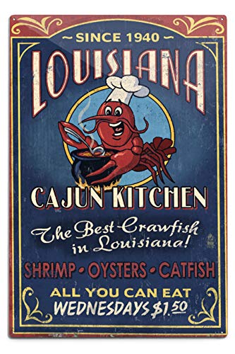 - Louisiana - Cajun Kitchen Crawfish Vintage Sign 44617 (6x9 Aluminum Wall Sign, Wall Decor Ready to Hang)