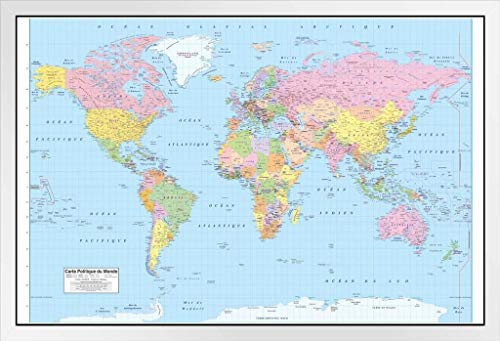 Pyramid America World Map in French Francaise Educational Reference White Wood Framed Poster 14x20