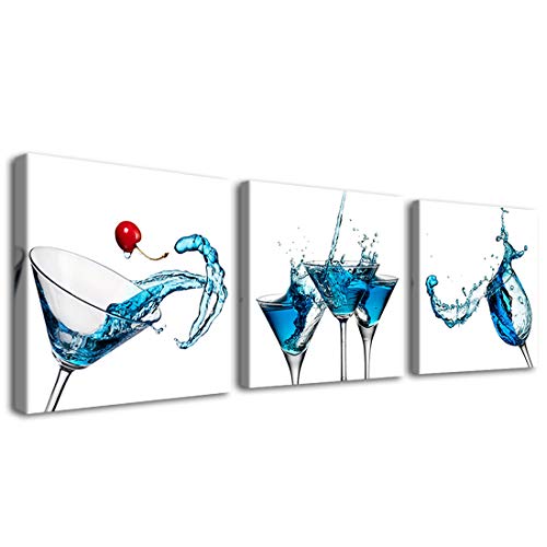 Gardenia Art - Blue Cocktails Wine Canvas Paintings Kitchen Decorations Theme Sets Wall Art for Dining Room bar Decor 12x12 inch/Piece, Framed, 3 Panels