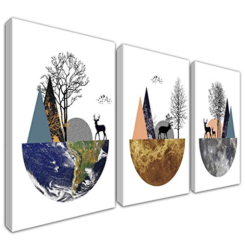 Gardenia Art Deers Trees and Mountains on The Planet at Sunrise and Sunset Canvas Wall Art Living Room Bedroom Decor 12x16 inch/Piece, Framed, 3 Panels