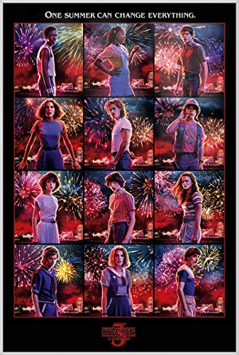 Stranger Things 3 - Framed TV Show Poster (12 Characters Grid - Montage) (Size: 24 x 36 inches)